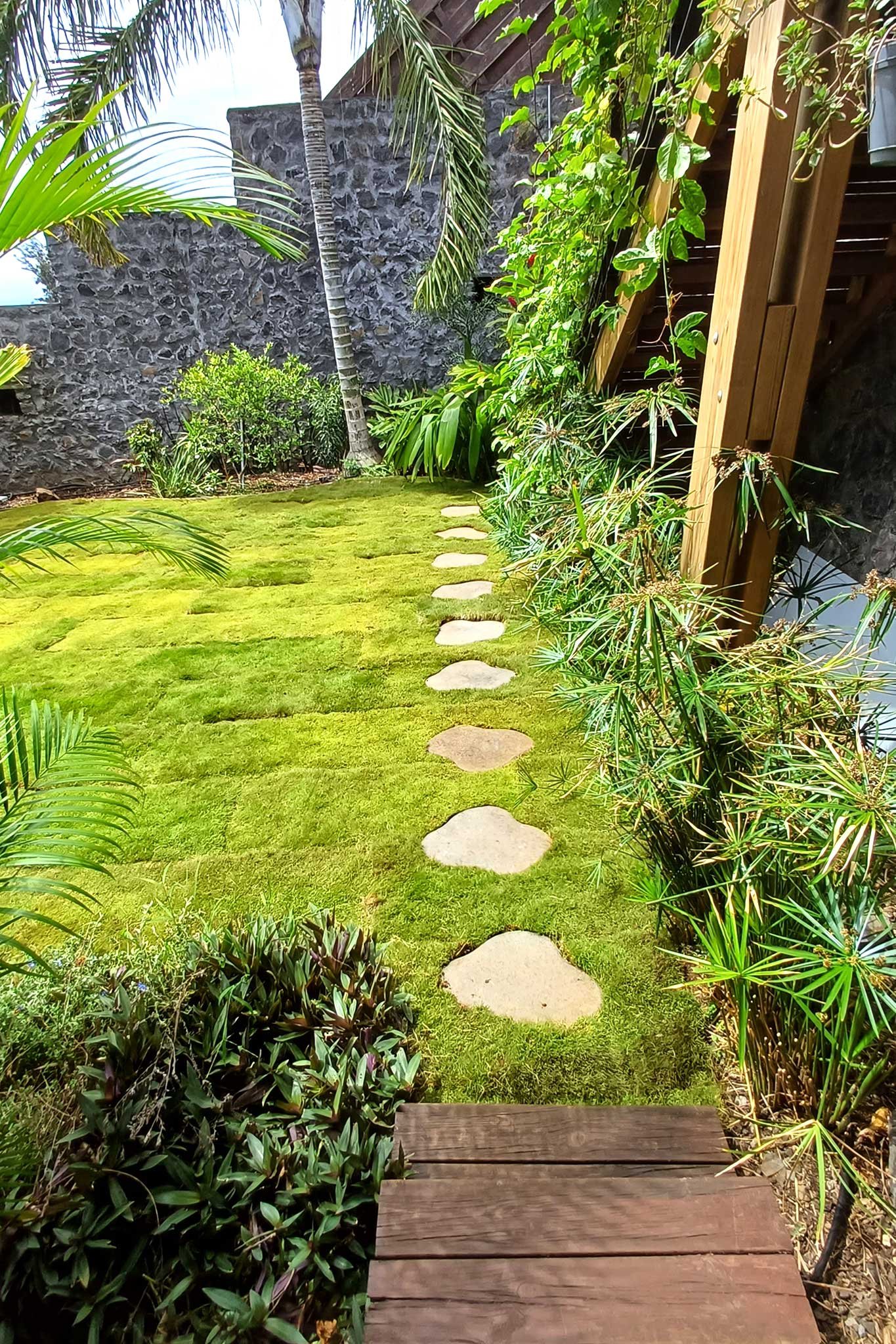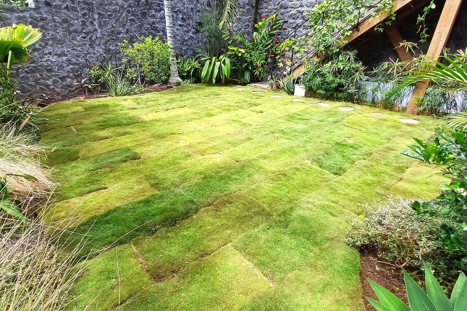 Aménagement, arrosage automatique et pose de gazon en plaque à St Leu (97436)